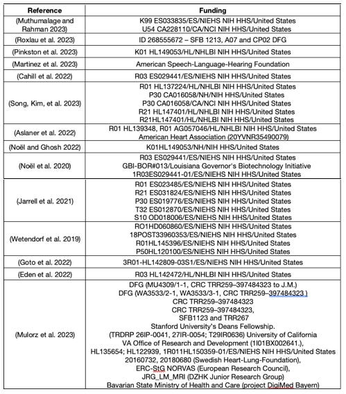 The overwhelming majority of the 40 studies we found were funded by the US National Institute of Health (NIH), sometimes directly snd some times through the FDA CTP or other institutions (universities) in the USA. Less than 6 studies were partially funded by Chinese, Canadian and German institutions. We estimate a total funding well over 10 million USD. The following table shows the funding sources of the 14 studies listed in the table of figure 1 (all are US NIH and US university funds, save two shared funds from Germany):
